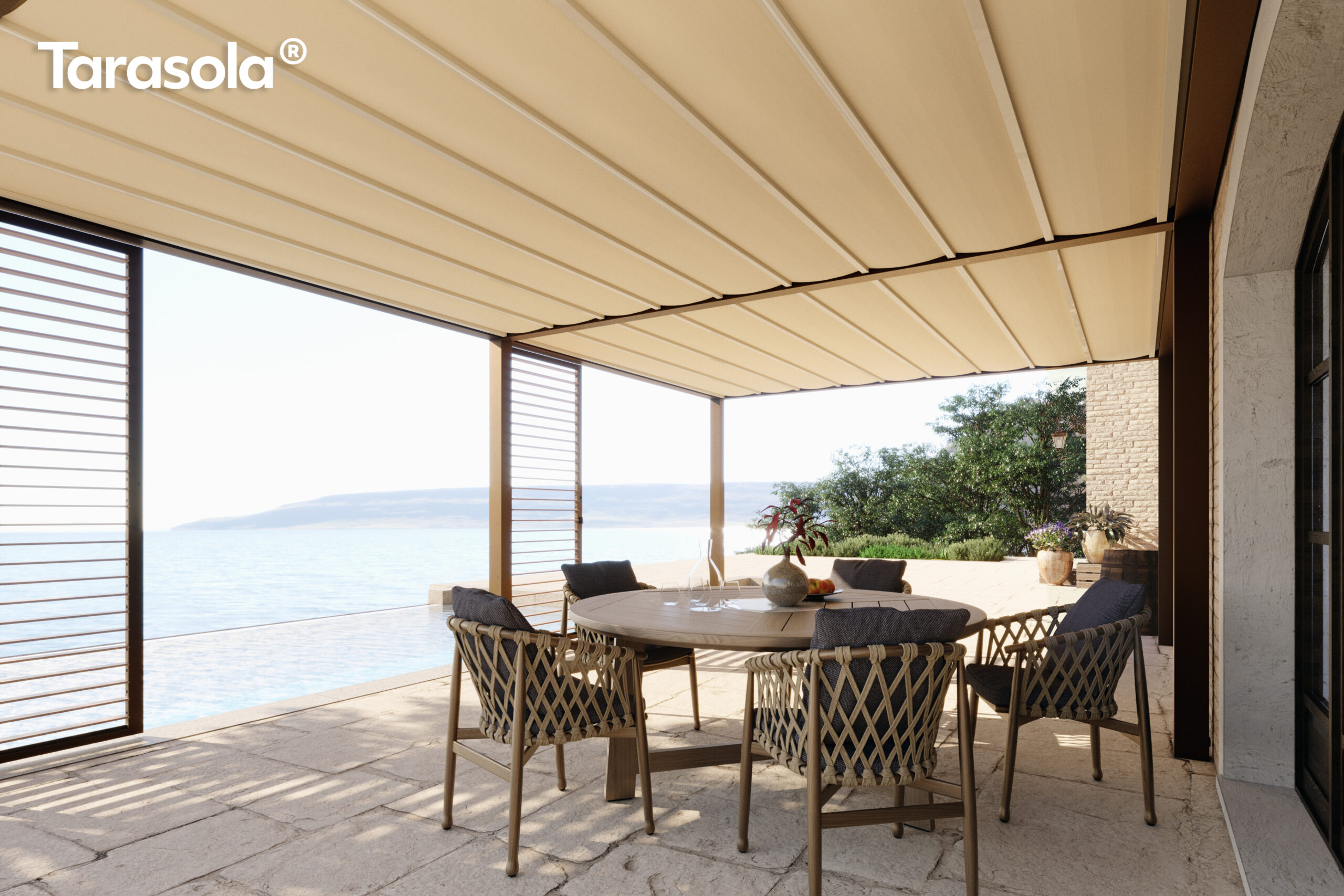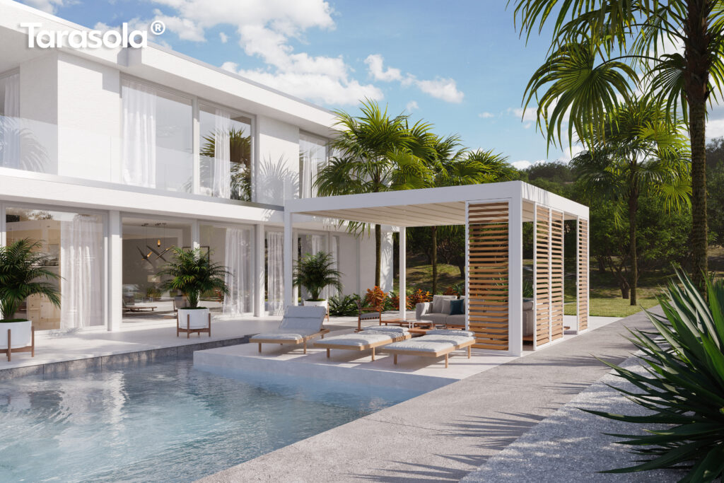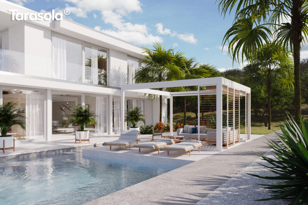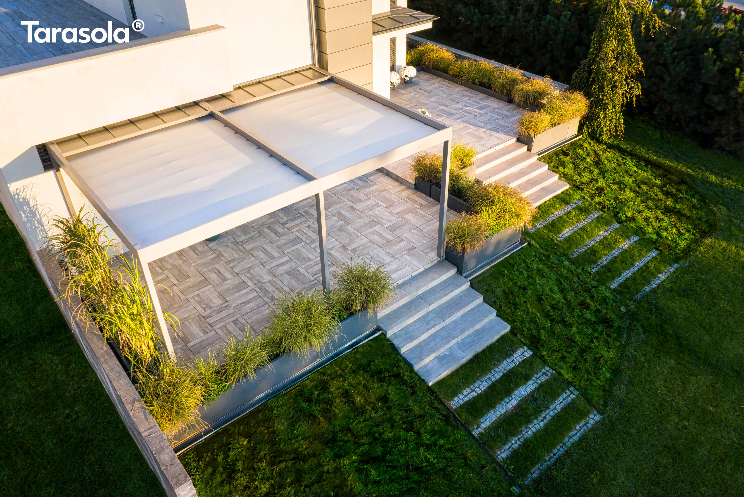 Cubic zrodził się z potrzeby stworzenia płaskiego dachu, ale jednocześnie dobrze chroniącego przed opadami atmosferycznymi. Tak powstał model, który posiada podwójny, napięty dach z opatentowanym systemem odprowadzania wody. Tarasola Cubic, to również nowoczesna pergola wolnostojąca o niesamowitym design.