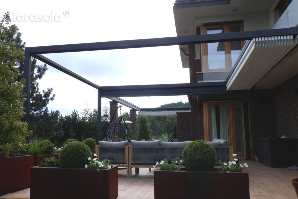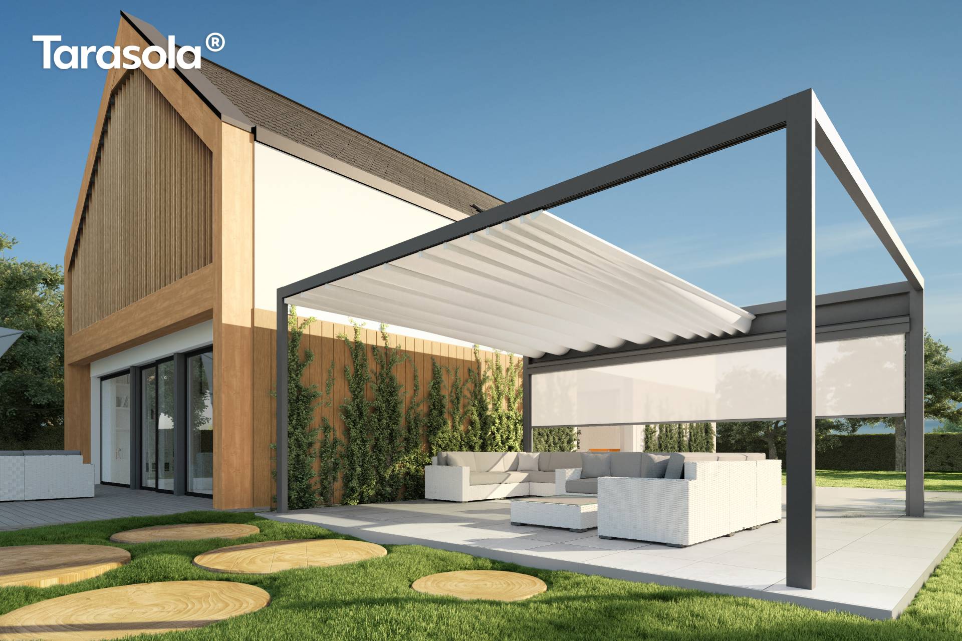 Elegancka konstrukcja z ruchomym dachem zmienia każdą przestrzeń w luksusowy salon pod chmurką.