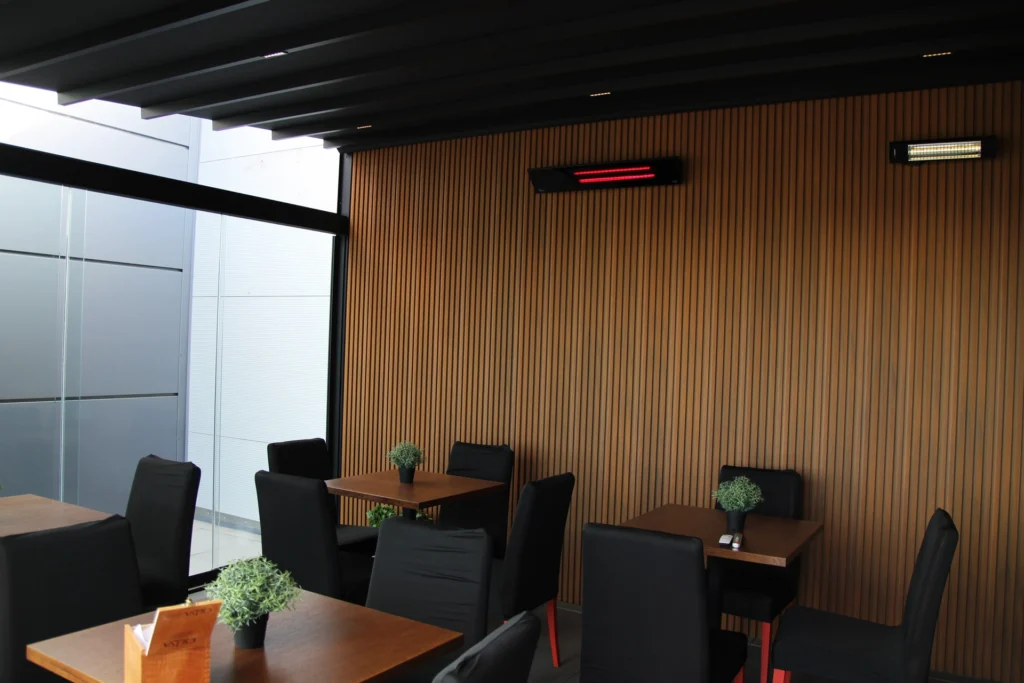 Promiennik ciepła z wbudowanym odbiornikiem podczerwieni i pilotem oraz z emitorem LOW GLARE wydzielającym mniejszą ilość światła. Klasa wodoszczelnośc:i IP65, kolor obudowy: biały lub czarny. Sterowany pilotem podczerwieni. Promiennik ciepła z wbudowanym odbiornikiem podczerwieni.