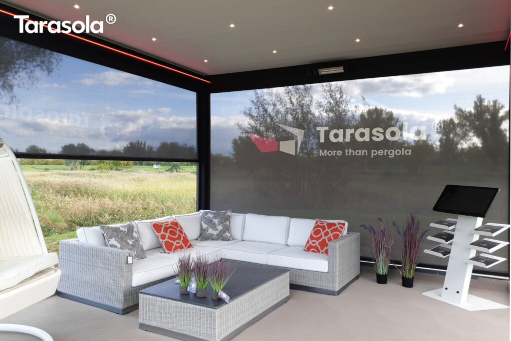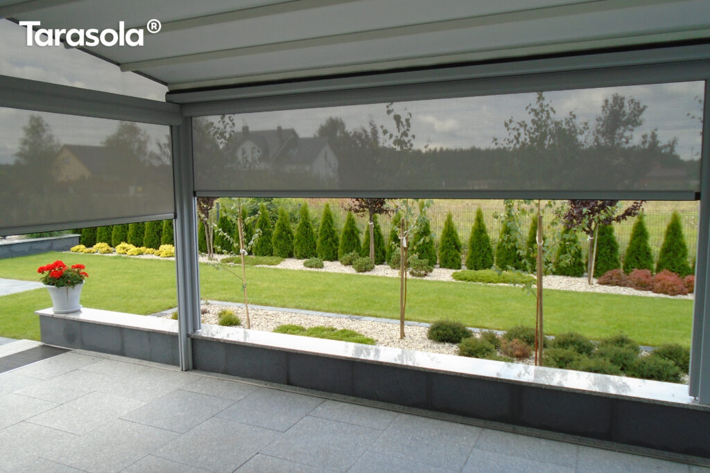 Przesłony rolowane są też skuteczną formą osłony tarasów przed wiatrem, zanieczyszczeniami oraz insektami.  Szeroka gama systemów jest dobierana indywidualnie do każdego projektu. Mechanizm zamka błyskawicznego i zastosowanie wkładki prowadzącej PVC w rolecie typu ZIP gwarantuje utrzymanie się tkaniny w prowadnicach bocznych przy bardzo silnych podmuchach wiatru, co czyni ten system najbardziej uniwersalną osłoną boków tarasoli.